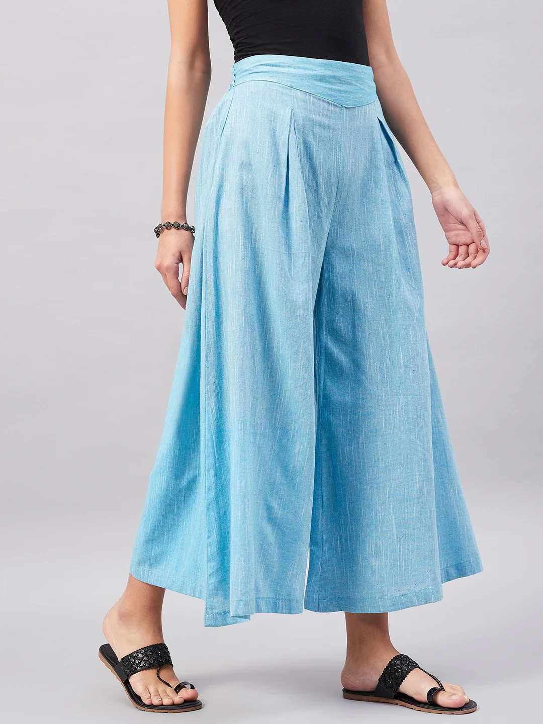 Casual Smart Skyblue Handloom Palazzo