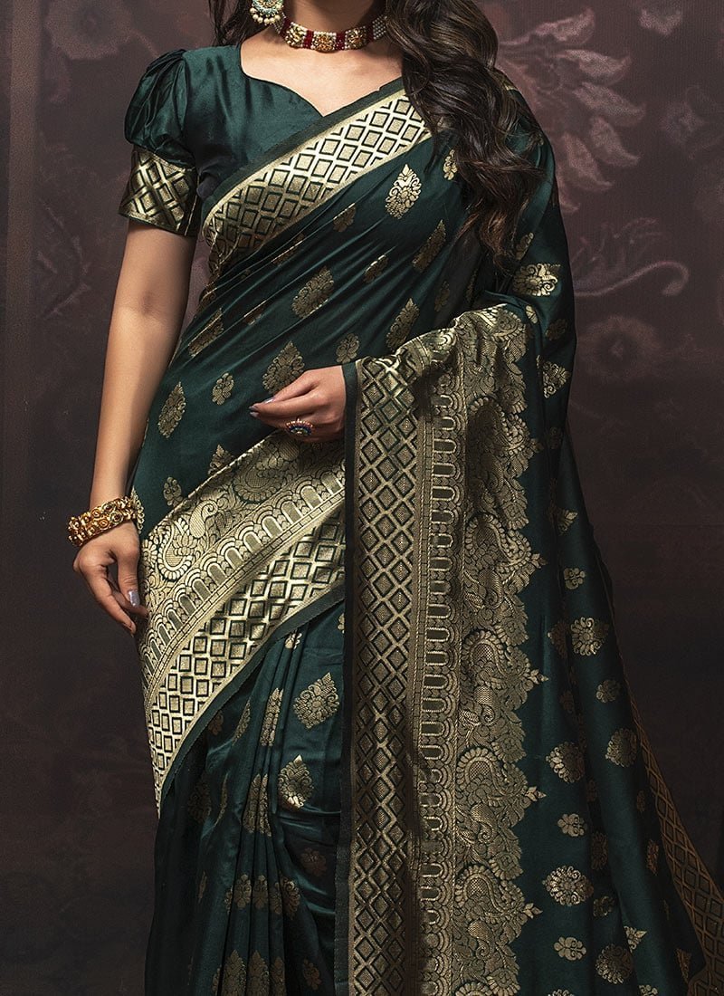 Green Benarasi Silk Jacquard Weaving Saree Festive Wear
