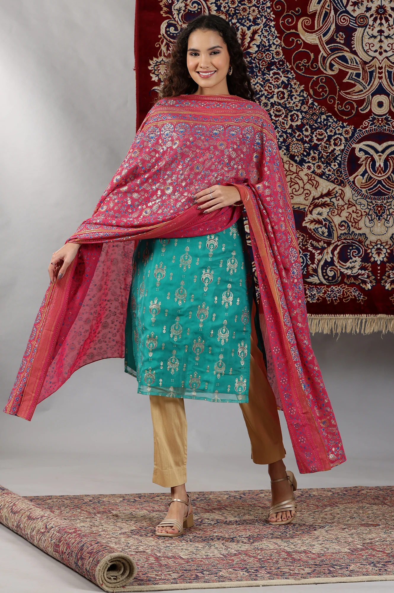 Magenta Pink Printed Festive Dupatta