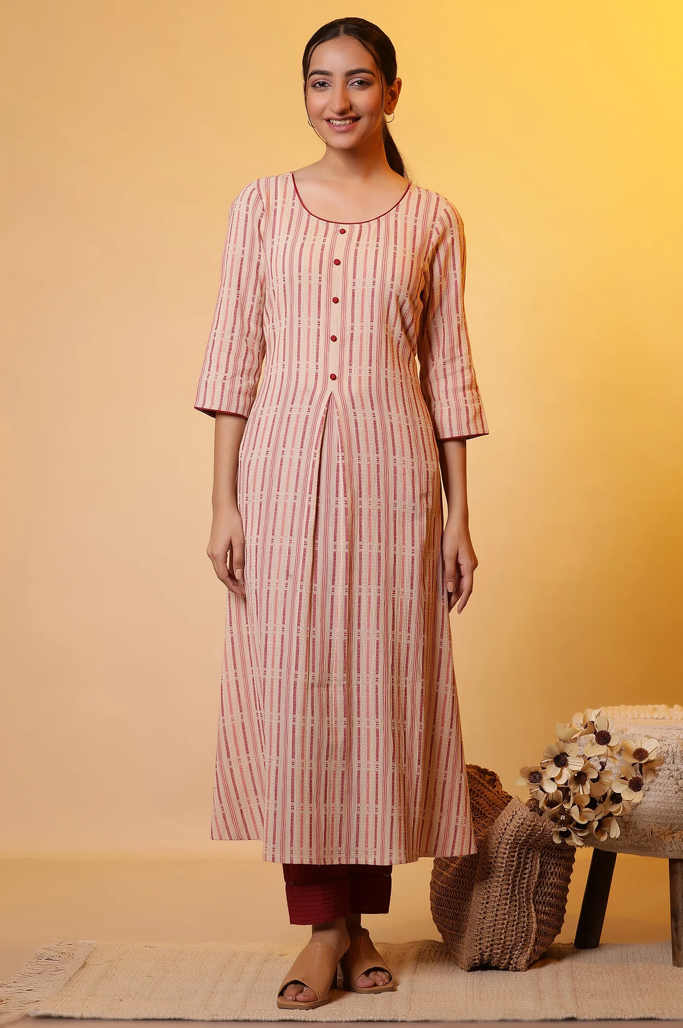 Co-ord set for women in airy white seer sucker fabric, this variation offers the same blend of elegance and comfort with a distinct finish. The kurta, designed with a modern silhouette, is paired with matching pants for a clean and minimal look. Ideal for casual outings, festive brunches, or small family gatherings, it is versatile and lightweight. The breathable texture of seer sucker ensures all-day comfort, especially in warm weather. Its timeless white shade allows for endless accessorizing, whether with bold jewelry or subtle accents. This co-ord set is a wardrobe staple that balances simplicity with elegance, making it perfect for women who love modern ethnic dressing.