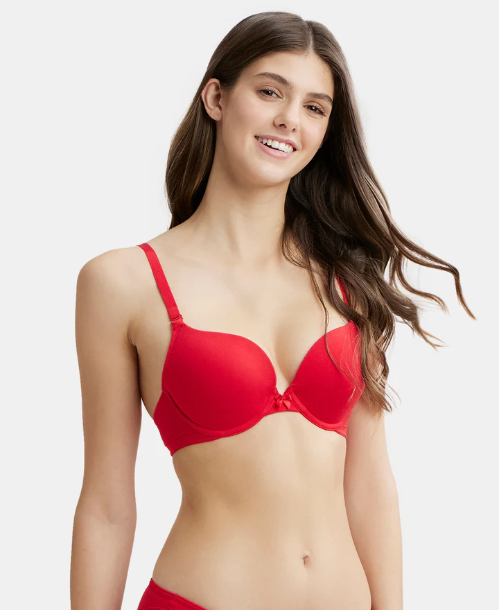 Wired Padded Super Combed Cotton Elastane Stretch Medium Coverage Pushup Bra with Plunge Neck