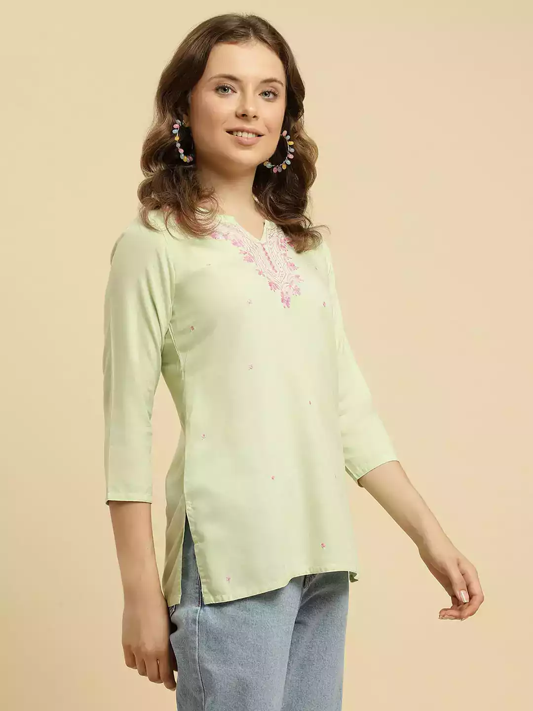 Light Pink Kashmiri Short Kurti