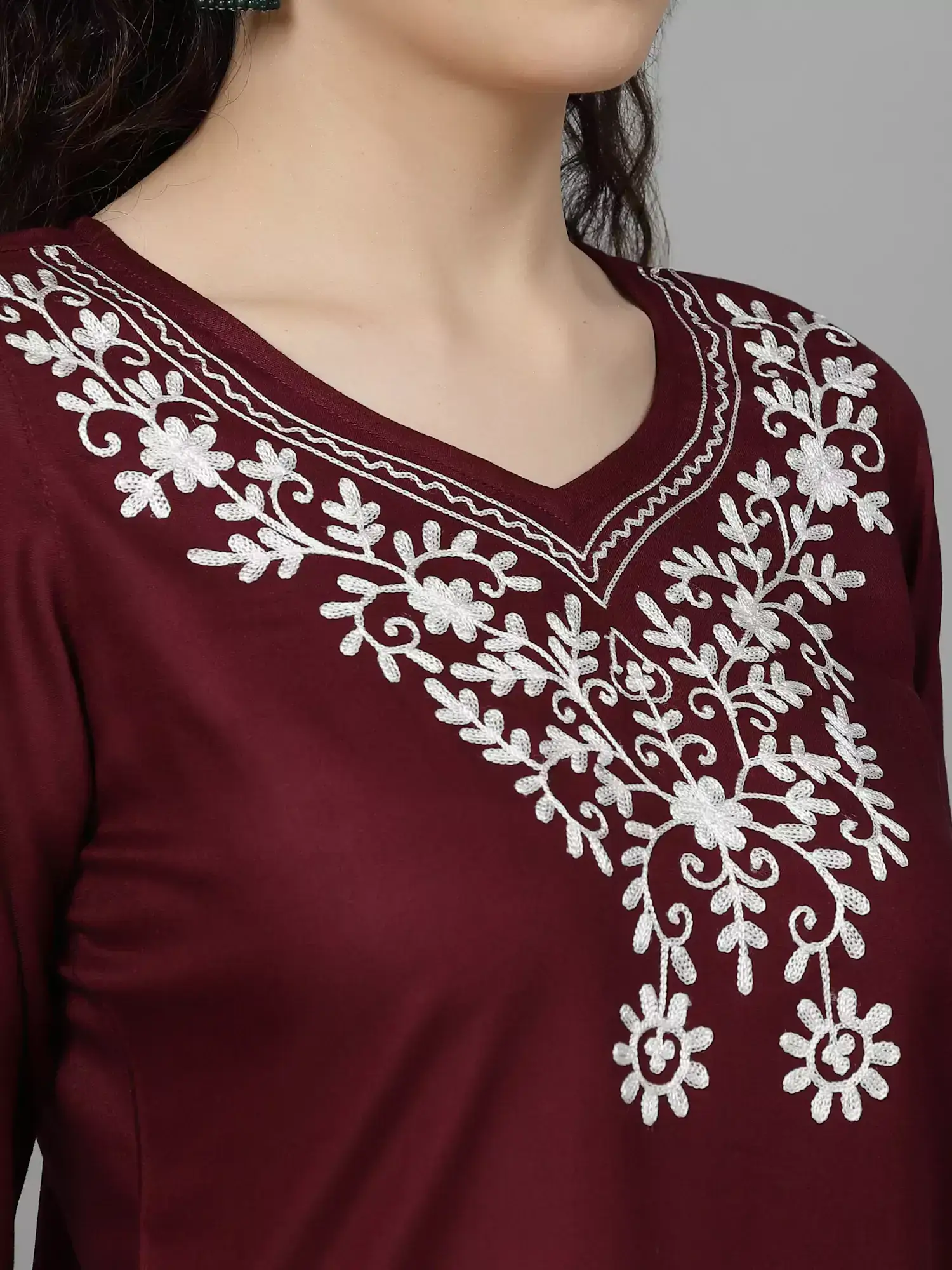Wine Colored Resham Work Short Kurti