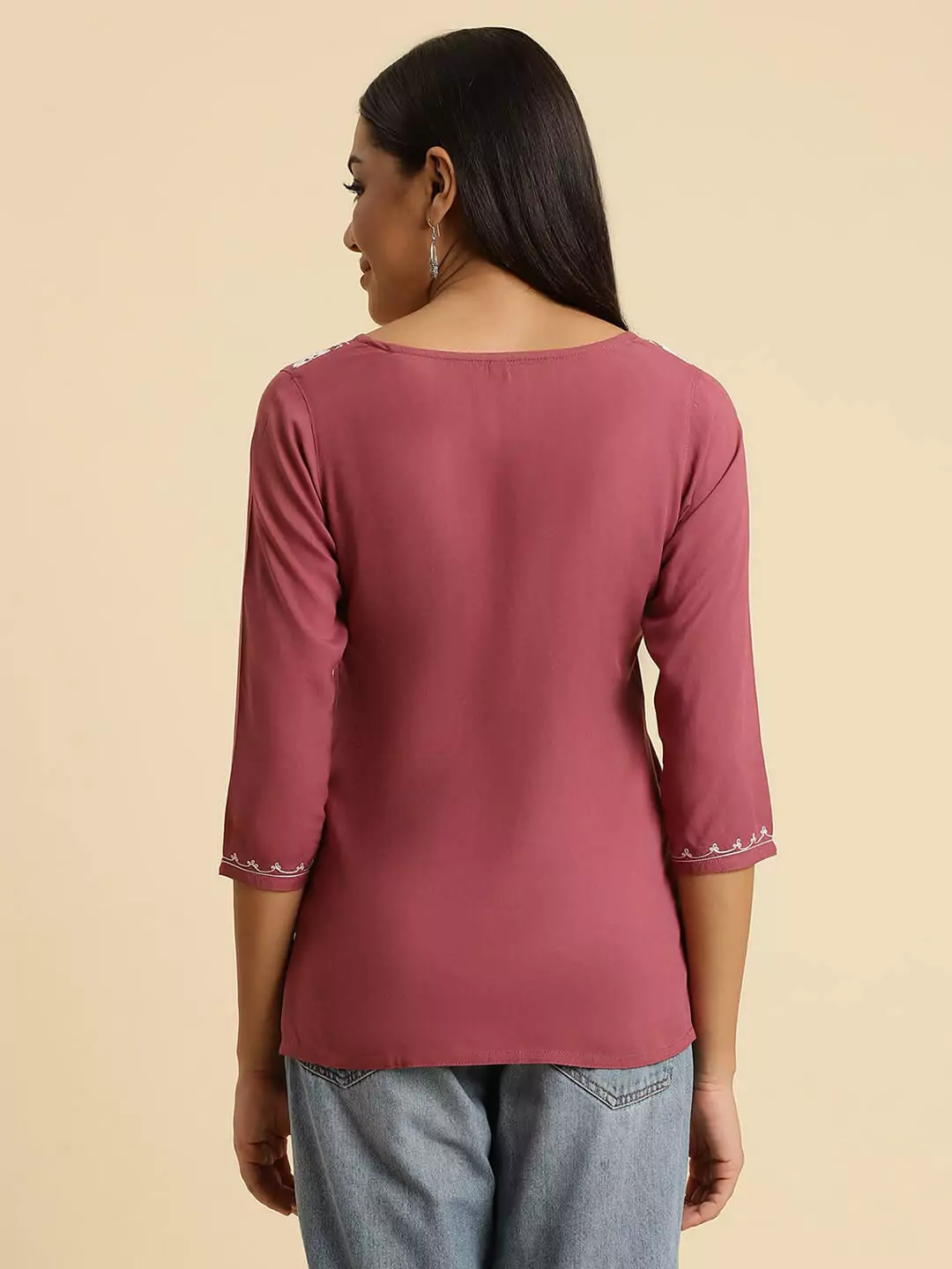 Pink Self Chikankari Short Kurti