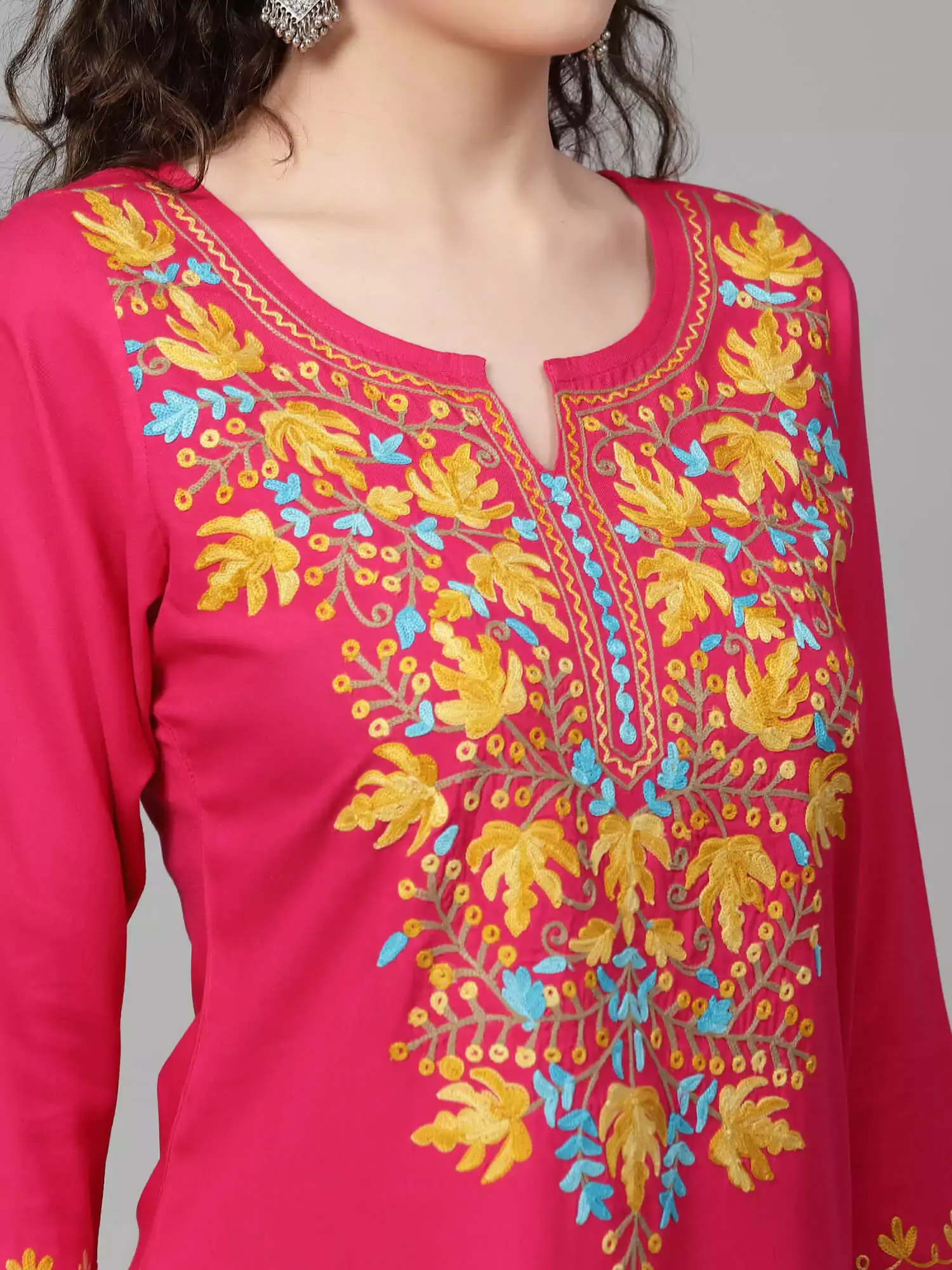 Look ethereal in this Aari work, Kurti, crafted with contours from Kashmir. Original price was: ₹599.00.₹500.00Current price is: ₹500.00. -